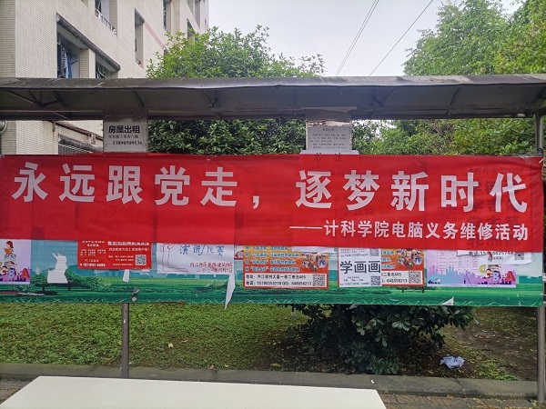 为庆祝中国共产党成立100周年,新葡的京集团8814计科电脑维修队始终铭记党的初心和使命,为人民服务始终是我们矢志不渝的奋斗目标。秉持着电脑维修队“全心全意为全校师生服务”的宗旨,4月10日11:30分,计科电脑维修队在新葡的京集团8814设置了两个义务维修摆点位。其一为四食堂门口,其二是西区五教西门口。在此期间,电脑维修队队员帮助全校师生义务维修电脑。在长达两小时的实践活动中,维修队队员积极仔细地检查电脑,并耐心地解决问题。本次活动取得圆满成功,电脑维修队也会不忘初心继续前行!