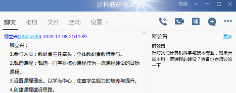 12月8日,计算机科学与技术教研室全体教师对计算机科学与技术专业课程的建设现状进行了讨论,提出了本专业在线开放课程、线下课程、线上线下混合式课程的建设目标和设想。