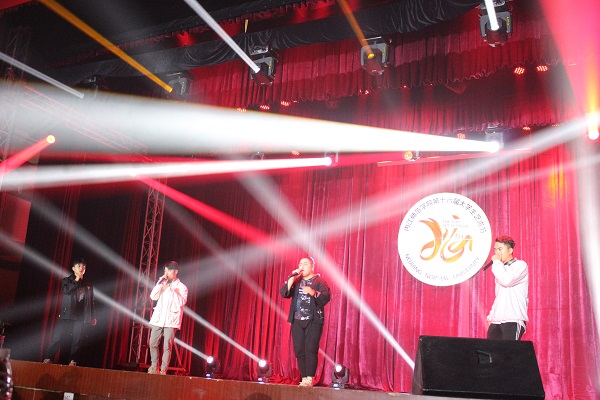 伴随着《爱如潮水》的前奏,四位同学依次缓缓上台,一开口便让在场所有人感受到他们对展现才华的渴望和洋溢青春的热情,他们的歌声让人心潮澎湃,激动不已。紧接着的四人齐唱更是让现场气氛达到高潮,使观众仿佛亲身感受到制曲人当时作曲所蕴含的深意。一曲唱罢,他们的精彩表现引来了现场观众阵阵掌声和喝彩。
