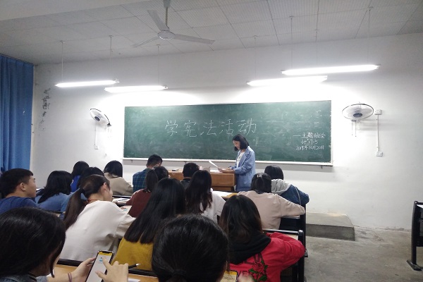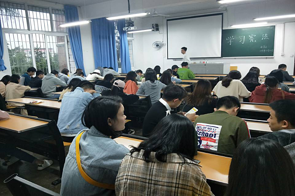 为了引导员工学习宪法知识,增强员工的安全意识和自我保护意识,10月20日晚6点,计算机科学学院(新葡的京集团8814)积极组织各班分别于一教、五教的各教室开展以“学宪法,讲宪法”为主题的班会。