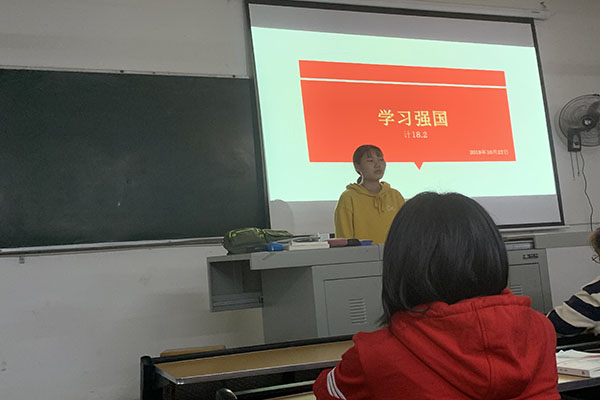 本次以“学习强国”为主题的班会由各班团支书主讲。各班团支书首先简单介绍了“学习强国App”的性质、使用方法以及使用要求。“学习强国”学习平台,由PC端(网站)、手机客户端两大终端组成,它是一个全面呈现习近平总书记重要思想的学习平台。
