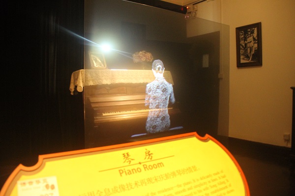 小楼的二层相对私人化,是夫人的卧室、盥洗室以及琴房。最特别、给我留下印象最深的就是琴房,琴房里的钢琴,是宋庆龄故居中,最珍贵的一件文物。通过全息影像,还原了夫人生前弹钢琴的姿态,美丽的背影让我们沉迷其中。?宋庆龄的卧室中,陈列着一些物件,床