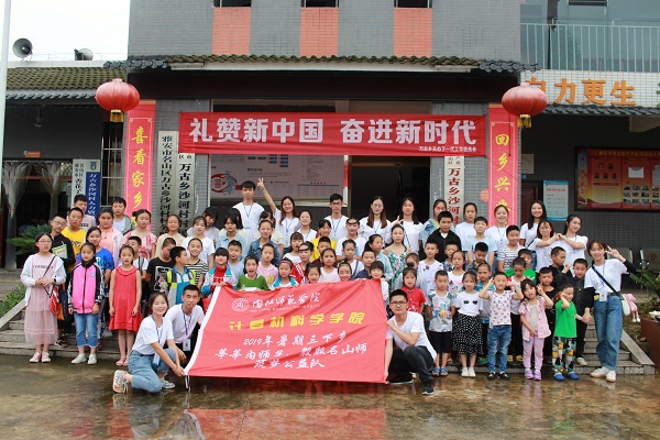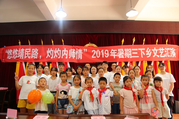 秉持一颗关爱的心,“悠悠靖民路,灼灼內师情”一行14名队员在指导老师杨超的带领下开展了以“力学十九大精神,笃行关爱留守儿童”为主题的2019年暑期三下乡社会实践活动,前往内江市靖民镇,给当地儿童送去关怀与帮助。通过支教活动为乡村孩子带去一份关心和温暖,开阔孩子们的知识视野,丰富他们的课堂生活,调动他们学习的积极性。此次,队伍也获得了在中青网投稿21篇的优异成绩,为支教活动提供了有力的宣传。