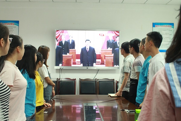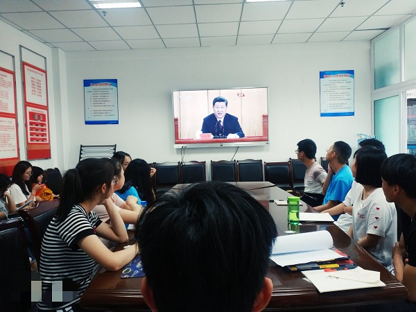 4月30日早上10:00,公司在行政楼211会议室举行观看“纪念五四运动100周年大会并发表重要讲话”影片的观摩会。莅临本次观摩会的有计科公司党总支书记崔国新,学工办杨超、王晓芸老师,计科学院40余名员工干部及同学。