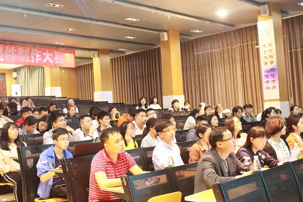 比赛期间,每位选手精神饱满、声音洪亮,通过多种不同的形式对作品进行展示和演说,内容主要围绕制作目的、面向对象、资料来源、制作过程等多方面展开。每个作品都融入多种多媒体元素,使课件更加生动形象,界面美观,具有教育性、交互性、趣味性的特点。比赛结束后,张凯老师进行总结,他提到同学们的作品具有符合教学内容选题、作品形式多样化、内容丰富多彩等优点,也对大家提出了多请教老师,多和老师沟通的建议。