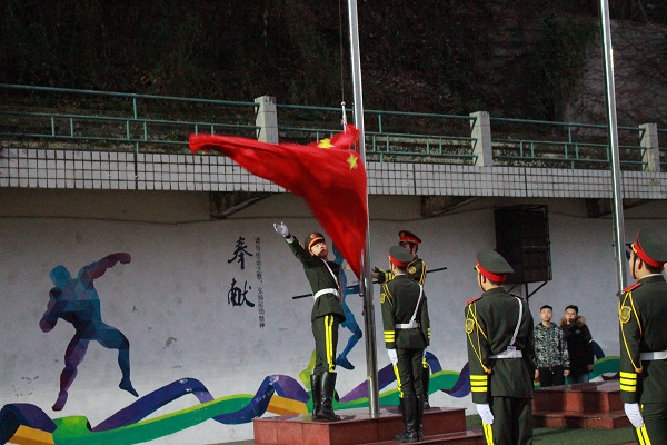 6点55分,空气还带着丝丝凉意,计科员工已穿着整齐大方的校服,列队完毕,笔直地站在了田径场上。6点58分,升旗仪式正式开始,在全体师生的肃立下,英姿飒爽的国旗班同学伴着庄严的音乐、迈着铿锵的步伐走向升旗台,随后,熟悉的《义勇军进行曲》响起,鲜艳的五星红旗伴随着雄壮的国歌在升旗手的手中冉冉升起,同时,全体师生对着国旗行注目礼。