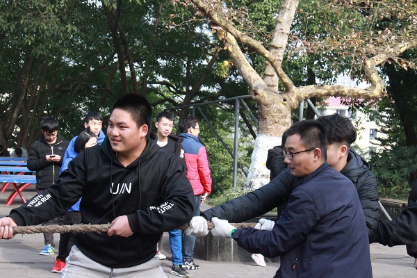 尽管已到冬至,天气有些寒冷,但前来加油助威的同学仍不在少数,使得赛场氛围十分热烈。当比赛的哨声响起,只见参赛的同学们紧握长绳,团结一心,卯足了劲拼命往后拉,观赛同学在旁边也自发组成啦啦队为自己班的同学高喊 “加油”,呐喊声响彻云霄,整个场面既激励又温馨 。