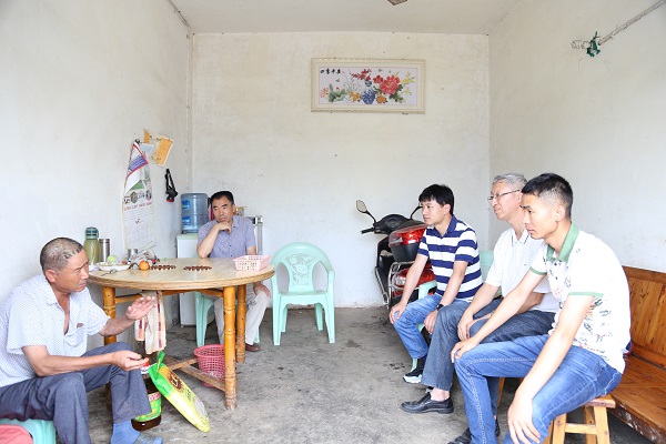 在金紫铺村第一书记罗超、村主任吴刚陪同下,党总支一行四人首先先后走访了吴海涛、缪文富两名帮扶对象,并送上了端午节慰问品。在具体了解两户家庭近期情况后,崔书记鼓励两户家庭:党没有忘记生活困难家庭,相信在党领导下,在优惠政策帮扶下,通过辛勤劳动一定能成功脱贫,过上幸福生活。在了解缪文富一家开垦荒地扩大农作物种植后,崔书记表示肯定,他说脱贫最终还是要靠努力奋斗。在了解到缪文富儿子缪强退伍后在外务工,王书记建议可以根据个人爱好,学习掌握一门专业技术,通过技术脱贫致富。李经理表示,学院可以通过校企合作单位,帮助缪强学习掌握网络维护技术。