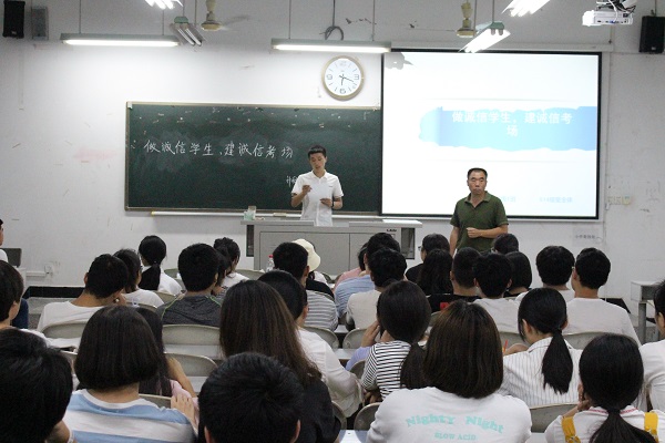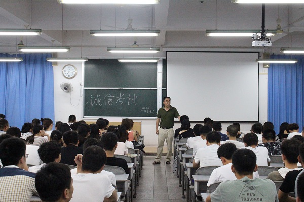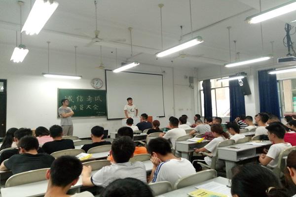 班会伊始,各班主持人通过视频、ppt等方式向同学们讲解了考试作弊的惩罚,宣读了诚信考试倡议书,向大家认真介绍了学校对于严肃考风考纪的各项政策,以及对于关于考试安排程序,考试管理,补考重修等各种问题,并结合以往公司中发生的关于考试中出现的各种问题及处理方法,告诫大家要认真对待考试。