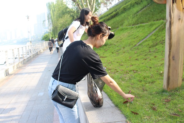 早上8点整,在活动负责人的带领下,参与活动的同学们带着垃圾袋到西区门口集合并分成两队。分别在清溪湿地公园和大千公园开展了“绿色校园行”活动。此行的目的是捡拾路人随手丢弃在公园内的垃圾。同学们都积极动手,不放过一个塑料袋,一个烟蒂,一张废纸。一个上午,路面上、沟渠里、花坛边的弃物被拾捡得干干净净,公园面貌焕然一新。今天,真正检验这些青年学子的是对环境的贡献——行动,而不是言止于行的口头表达。