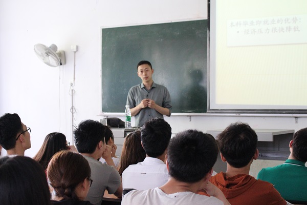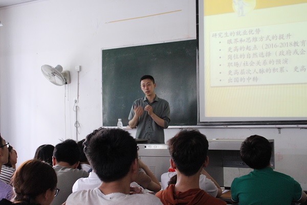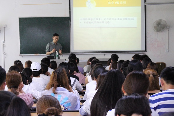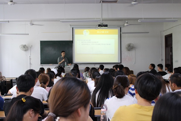 讲座伊始,唐聃教授就2019年研究生推免政策进行了详尽的阐述,对免试推荐条件、计分办法等问题做了细致的解答,分享了成都信息工程大学往年的招生政策和成果以供同学们参考。随后,唐聃教授分别对软件工程学院学科发展、团队团队、科学研究和就业情况又做了详细的介绍,尤其是在联合培养、学术资源、就业前景等特色优势方面吸引了同学们极大的兴趣。最后,唐聃教授深入介绍了软件工程学院现有的学科门类、招生情况、研究生选拔政策和奖助体系,鼓励在座的同学们积极报考软件工程学院研究生。
