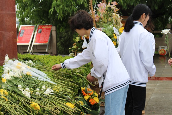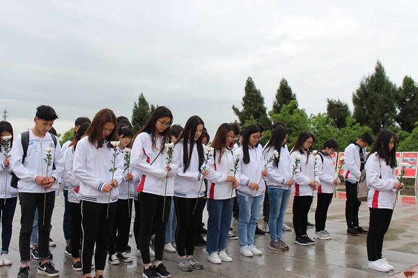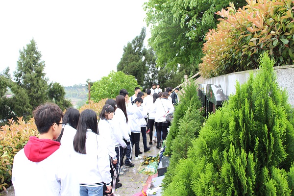 9点20分同学们到达内江市靖民镇烈士陵园,10点30分扫墓仪式正式开始。同学们收起往日的嬉笑,神情严肃。在革命烈士纪念碑前,同学们整理仪容,每人手中拿着一支白菊。首先,同学们全体立肃默哀一分钟,随后井然有序地献上了鲜花,表达对先烈的崇敬与哀思;接着由员工代表发言,然后同学们自由参观,去了解当年烈士们的事迹,领悟今朝平静生活的难得;最后,同学们进行了庄严的宣誓。