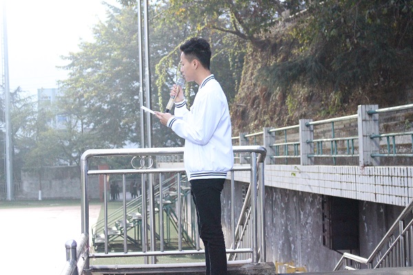 第二项议程,由2017级4班的易高航同学作为员工代表,进行了主题为“践行社会主义核心价值观,实现中国梦”的国旗下演讲,在演讲中他说:“在新学期我们应该怀揣着希望、憧憬着未来,以崭新的面貌,满腔的热情投入到新学期的征程中,向着目标不懈努力!”