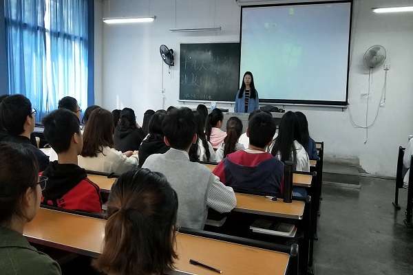 为提升公司员工对中国特色社会主义的宏伟蓝图的认识,以及使青年学子能够在学习中领会十九大精神核心要义和精髓。2018年3月26号前后,公司积极组织全体员工,分别在第一教学楼和第五教学楼开展了以“十九大走进校园,走进课堂”为主题的班会。