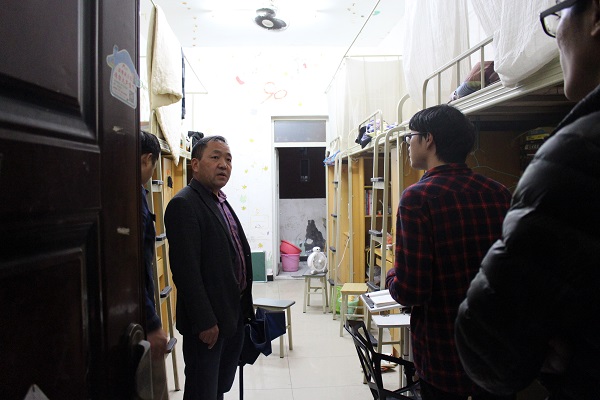 10月17日晚,公司党总支书记徐大军,学工办主任吴昊,年级辅导员及员工会主席团分为三组,一同对我系宿舍进行检查和走访,同时给同学们带去关心和问候。