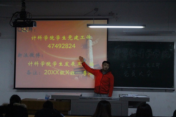 会议伊始,计算机科学学院员工第一党支部书记李倩倩,第二党支部书记吴昊首先宣读并带领学习(部分)共产党章程。紧接着,以讨论预备党员转正问题、讨论吸收入党积极分子为预备党员的问题展开此次大会。