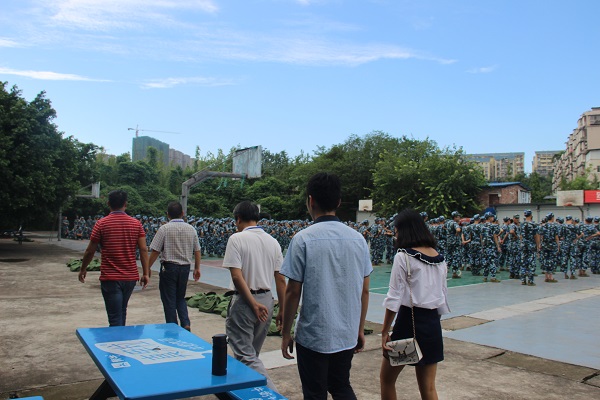 2017年9月6日下午四时许,公司党总支书记徐大军,经理刘益和,团总支书记吴昊以及团总支、员工会主席团一行来到学校山腰篮球场,看望参训新生。初入训练场,计科学院参训新生正趁着斜阳余晖刻苦练习正步踢腿动作。