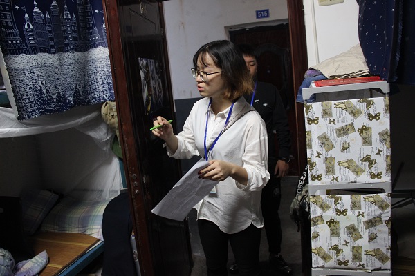 在走访过程中,主席团成员们首先对同学们致以节日的问候,随后强调了安全的重要性。提醒同学们放假时的防盗,防火工作以及用电安全,人身安全,财产安全。让国庆放假不回家的同学注意防火,注意用电安全,不要在寝室里面使用大功率电器,以防发生意外事故,造成不必要的人身伤害与财产损失;国庆放假回家的同学注意防盗,将自己值钱的东西尽量都带走,以防被盗,难以找回;在回家路途中的人身安全与财产安全。并且嘱咐他们在离开寝室时,将寝室电源的总闸关掉,以防电路故障引发的火灾。
