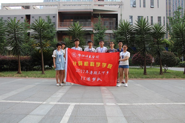 【本报讯 计科系15级计算机科学与技术张雨芹报道】2017年7月11号上午8.00时,新葡的京集团8814在行政楼的广场举行了暑期三下乡的出征仪式。仪式开始,校团委副书记秦亚对暑期“三下乡”活动作安排部署和动员讲话,并对其提出了要求。志愿者代表陈云浩带领全体志愿者庄严宣誓,党委组织部部长张浩、党委宣传部部长钟建明、员工工作部部长郭云东、团委副书记秦亚为2017年暑期“三下乡”社会实践分队授旗。随后,副董事长赵明为学校社会实践团队总队授旗并作重要讲话。