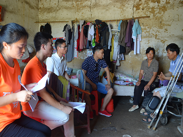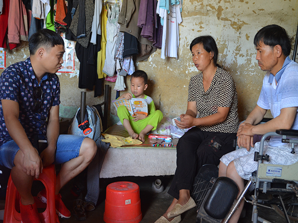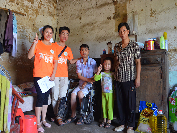 午饭过后,吴昊老师和杨超老师与访调组的队员们带着物资一起探望了一直受到新葡的京集团8814资助的贫困人家。据了解,该户的生活条件十分艰苦,他们家里的主要劳动力因摔伤致残,无法走路,家中又有小孩及老人,家中的主要收入来源是靠自己种植粮食和受到的社会资助。因受政府及公司的帮助,他们的住所条件和生活条件得到了很大的改善,家里小孩读书,家人的医药都得到了相应的帮助。