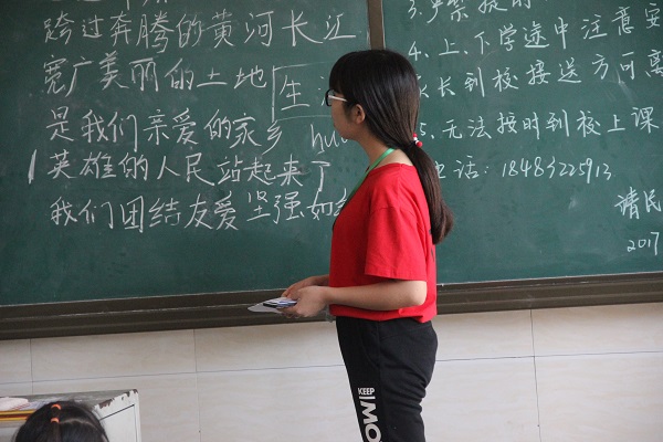 阳光依旧大肆放热。重复着从天空照射大地的过程,然而时间却不肯停息,她裹挟着我们匆忙的到了下午。世间事难有顺心事,十之八九坎坷不平,这是常态。很开心的是每天看着坐在下面的一双双渴望而又纯真的眼神,“精英小教师们”对自己站在讲台前亲身经历感受知识传播力量而获得肯定。我们期待着世界,期待着未来,期待着明天,更期待着明天更加欢乐的孩童。