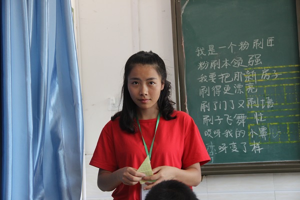“五星红旗迎风飘扬,胜利歌声多么嘹亮,歌唱我们亲爱的祖国,从今走向繁荣富强。”“精英小教师们”结合通过手机搜索和低音炮的结合,开始了“音乐课”的教学。这个年龄阶段的孩子们接受音乐旋律的能力很强,清澈的眼神传递给“精英小教师们”必须讲好每一堂课的勇气,积极的回应坚定“精英小教师们”一定要上好每一堂课的决心!“精英小教师们”边打节拍边跟唱,在这里不论师生,不论大小,嘹亮的歌声充满校园,他们不受任何拘束,没有任何隐藏,在“精英小教师们”面前展示了真实的自我,每一个孩子都能把《歌唱祖国》熟练地唱出来,这个结果完全超乎了“精英小教师们”的想象。看着一张张童真的笑脸,感觉浑身轻松,所有的压力和烦恼都同孩子们的歌声一起飘走了。