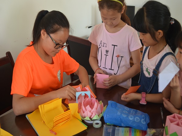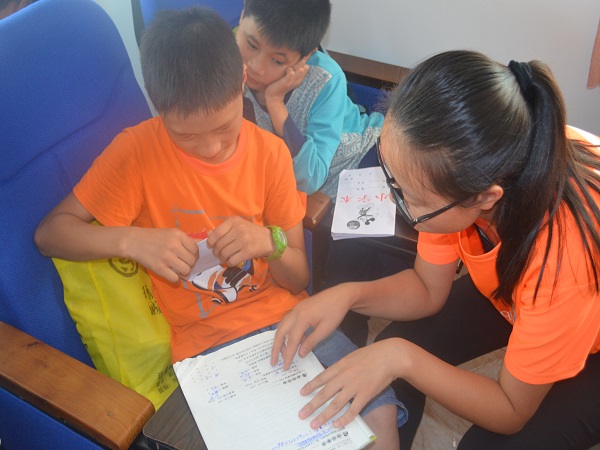 早上6:30,所有队员起床,做早餐及吃早餐,7:00迎接员工,带员工到教室,分配座位。8:00正式开始上课,首先进行的是师生互动,支教组的小老师各自介绍了自己,以及自己所担任的课程教学,紧接着,由副队长廖益隆为员工上课,重点强调了安全,以及近几天上课情况的安排,制定了课堂纪律以及下课时间的活动范围。时间总是在师生的互动交流中过得很快,一转眼到了员工们最感兴趣的手工课了。为了确保每个小朋友都能学会手工并且提高效率,由每个小老师带两个小朋友,辅助他们完成自己的手工作品。下午的时间是辅导员工的作业以及为他们讲解不会的问题。不知不觉,夕阳西下,时间在奔走忙碌与欢声笑语中悄悄溜走!