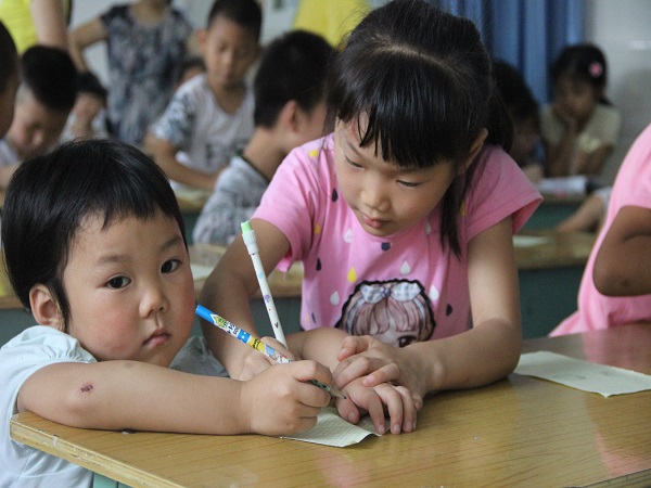 呼吸着略带湿热的空气,志愿者们在学校里的老树下集合,简单地开了个安全注意事项以及成员的工作分配会议。便马不停蹄地开始了对孩子的课业辅导和艺术素质教育。