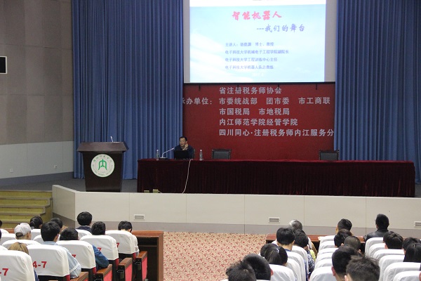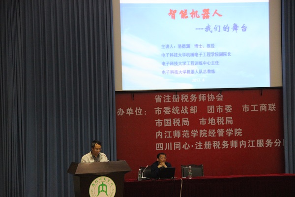 2017年4月27日,电子科技大学机械电子工程学院副经理骆德渊教授应邀来公司作了题为“智能机器人——我们的舞台”的报告在第一学术厅精彩开讲,应邀到场的嘉宾有市科技局领导,公司科技与团队建设处、计科学院、数信学院、物电学院,以及内江职业技术学院、内江一中、内江二中的部分师生代表。