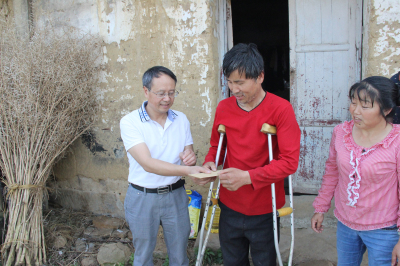 刘经理首先代表党总支表达对缪文富的关心,希望他继续保持向上的心态,积极配合身体功能康复训练,能早日摆脱拐杖行走。刘经理表示,廖文富大儿子退伍后,计科学院可以组织党员教师,甚至联系校企合作单位对其进行专业知识培养,帮助廖文富一家真正通过自己的努力脱贫致富。