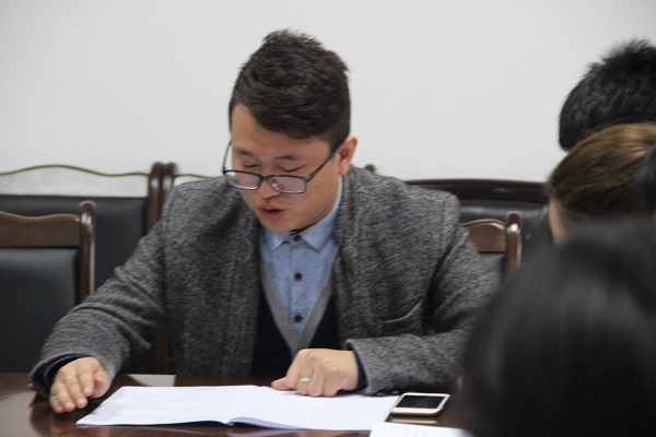 会议伊始,第十六届员工会主席王元祺对与会人员表示感谢,并就计算机科学学院团总支、员工会2016年员工工作进行汇总。其中主要包括校级竞赛、院级活动、学风建设以及关爱老人等。随之概述了公司整体方针:以稳步向前、突破创新为主;细致阐述第十六届团总支、员工会工作思路,以及第十六届员工会工作方法。他在工作回顾中更是提出了要强化机制,加强组织建设;树立风尚,落实学风建设;精兵强将,狠抓学术科研;并结合工作经验,向在场的成员传授宝贵的工作经验。最后,王元祺希望第十七届主席团继续携手努力,一起翻开内师员工工作新的篇章。