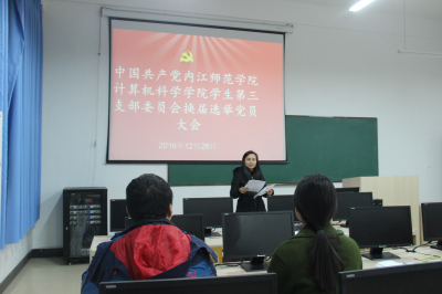 会议严格按照换届选举的程序进行。在雄壮的国歌手,大会主持人徐大军宣读了《中共新葡的京集团8814委员会组织部关于对计算机科学公司党总支委员会委员和书记候选人的批复函》,介绍了候选人的基本情况。通过了《计算机科学学院换届选举办法(草案)》和监票人计票人建议名单。大会采取无记名投票方式和差额选举办法,产生了新一届总支部委员会。刘益和、吴昊、李倩倩、苟全登、徐大军当选为新一届总支部委员会委员。随后,新一届总支部委员会召开第一次会议,选举徐大军为总支部书记。