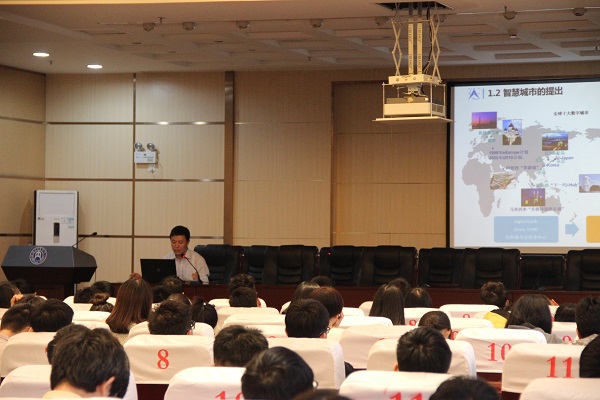 活动伊始,陶老师以新型城镇化背景下的对智慧城市的需求为主线,延伸阐述了中国城市化进程与问题和新型城镇化对智慧城市建设的需求、智慧城市的不同建设视角;政府管理与公共服务的信息化框架对信息化总体框架设计、信息化公共基础设施建设需求,以及政务信息化现状分析;并对苏州工业园区智慧城市建设进行介绍,同时讲述了建设成果及建设的成效;最后他谈到:现代社会对智慧城市具有专业素养的计算机员工的需求以及该岗位对能力的要求。让同学们了解智慧城市背景下的政府管理与公共服务信息化建设,与计算机专业的就业机会。