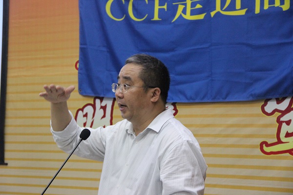 下午16时许,董教授开场以播放视频的方式,介绍了CCF的岁月历史及其存在的真正意义在于造福广大师生。董教授认为,课程评估是中国教学改革成败的关键,针对这个问题,他在BLOOM分类法和SOLO分类法的基础上,分析了我国教育出现的问题。他阐述了数学与计算机科学的区别,通过对“亚历山大的算法”的分析,他要求学子们了解并且掌握其解决方法。他结合“计算思维导论”课程和“计算机科学导论”实践,提出在大学第一门计算机课程的建设中,如何将课程评估与国际工程问题求解绑定在一起,如何提高计算思维能力,为员工今后的学习清除认知上的障碍。此外还介绍了微软产学合作项目—“计算思维结构”的课程情况。