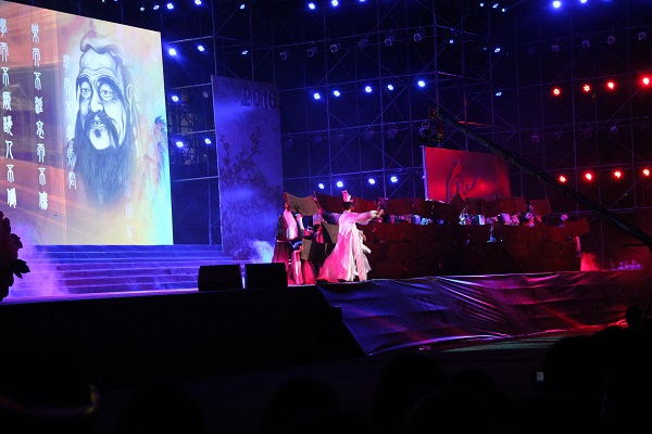 晚19:30,员工们一起到田径场参加学校组织的“大千芳华”育人成果汇报表演,晚21:00汇报演出结束,演出受到员工们的一致好评。