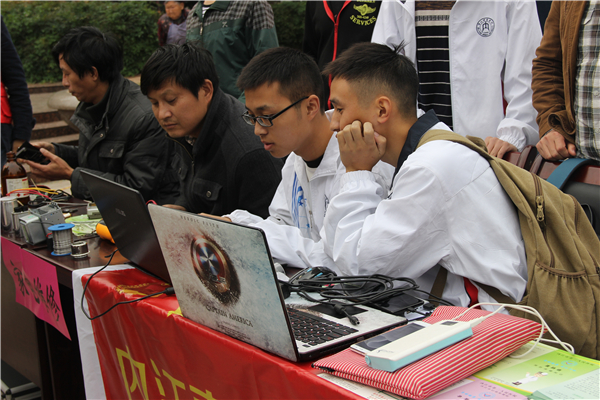 在此次活动中,公司电脑维修队队员都非常热情。他们亲切的与社区居民交流,为他们排忧解难。很多的居民带来了自己的电脑,希望能都得到维修队员的帮助,现场充斥着融洽、和谐的气氛。