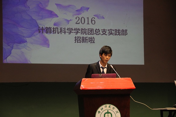 9月24日下午16:00,计算机科学学院团总支、员工会招新宣讲活动在西区礼堂举行。活动伊始,由计科学院员工会主席王元祺代表主席团介绍了员工会的架构和特色,并向新生传递了“敢于尝试,追逐梦想”的寄语。