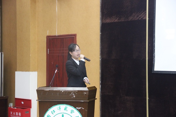 会议伊始,由主持人宣布会议开始并介绍到场嘉宾。首先是:五个团队代表先后向大家汇报实践经验及成果,给师生们讲述实践过程中的细节,并展示相关照片,她们精彩的演讲和生动的PPT演示赢得了全场师生的阵阵掌声。