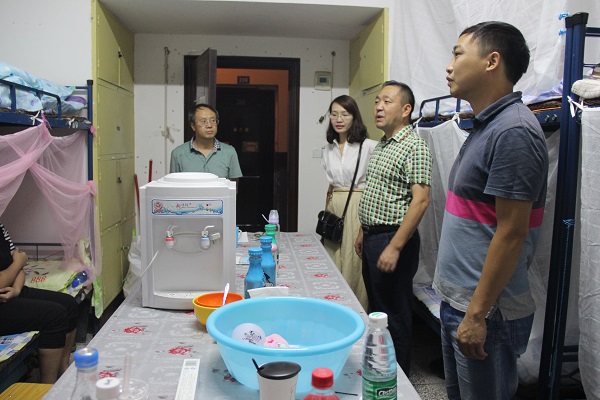 公司领导分别走访12栋、27栋男女生寝室。在走访检查过程中,徐书记主要对寝室布局、卫生情况以及用电安全等问题进行了检查,并进一步强调了同学们应严格遵守学校和学院的相关管理规定,严禁夜不归寝、打架斗殴等现象。还就同学们在寝室内吸烟、打牌和喝酒做出了严格的规定,对寝室卫生和物品摆放进行仔细的检查。同时,全面细致的检查了寝室内可能存在的安全隐患。走访期间,徐书记和刘经理与同学们进行了亲切的交流,对存在问题的寝室提出了整改建议,也了解了员工的生活状况和学习情况,并督促员工养成良好的作息习惯,提高防火防盗的意识,共筑一个和谐安全的生活环境。仔细询问他们的入住情况,了解新生来到新的地方在情绪、生活的变化;关注新生的寝室环境、安全等问题,提醒新生谨防寝室安全、人身安全、财产安全等系列问题,特别指出注意寝室上门推销等诈骗手段;最后公司领导在军训生活上做出深切关怀,提醒新生在军训时听从教官的指导、班主任的安排指挥,并在军训期间注意防暑、防晒伤、防跌伤等意外情况。