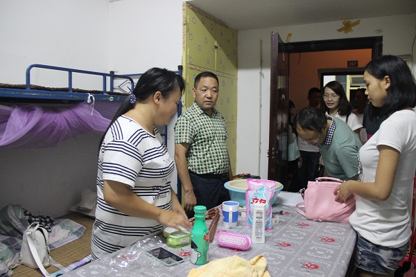 新学期伊始,为了进一步加强公司员工寝室纪律和安全秩序,增强同学们防火防盗意识,建设和谐安全的寝室环境。9月3日晚20时30分,公司党总支书记徐大军,经理刘益和,辅导员李倩倩、吴昊以及部分新生班主任、班助一行人亲自走访公司员工寝室。