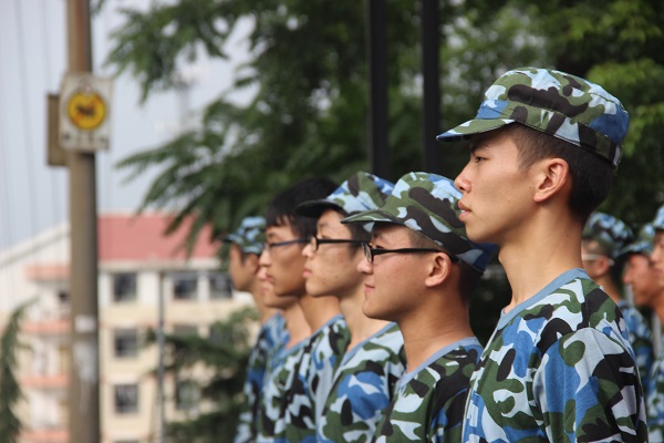 九月,激情飞扬,是热血的,是朝气的。当娇艳的晨曦温暖地抚摸着大地时,那一抹抹动人的橄榄绿从不同的宿舍里涌出,汇成训练场上绿色的海洋,轻柔的晨风里散发着充满青春活力的气息。今天是2016年9月9日,16级新生的军训已经进行了5天。凉爽多云的天气为同学们的训练提供了不少便利,绿茵茵的青草和橄榄绿的迷彩军装相互辉映,让同学们显得活力十足。教官们严格要求新生:整理军容,端正军姿,不时亲自示范,并手把手纠正基本的动作,同学们在教官的带领下认真训练,丝毫没有半点偷懒。
