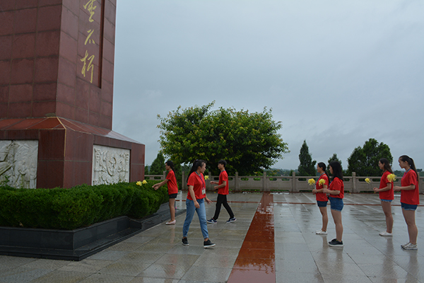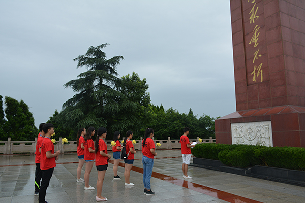 烈士陵园在苍松翠柏的映衬下显得格外庄严肃穆,园内微风轻拂。9时30分,在庄严肃穆的“人民英雄纪念碑”前,举行了简短而又隆重的悼念仪式,队员们向烈士们深深地鞠了三个躬,一名员工代表向革命烈士纪念碑致辞,我们一一向革命烈士纪念碑敬献花束,从而表达自己对先烈的缅怀之情。