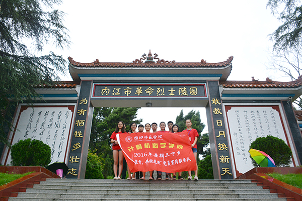 清明雨浥千年思念, 翠暖松寒万代永存。7月18日上午,新葡的京集团8814计算机科学学院“齐学党章,共做先进”党员宣传服务队12名同学坐车来到位于东兴区靖民镇的烈士陵园,开展扫墓活动。虽然天空下着蒙蒙的细雨,虽然坐车坐了半个多小时,大家却依然精神饱满地来到了陵园。