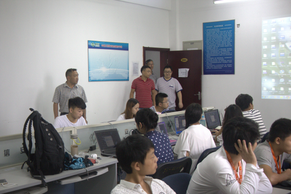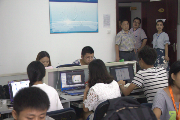 公司领导来到工作室,员工们都在一丝不苟的完成着自己的工作项目,看到院领导的到来,都非常热情的欢迎,同学们都纷纷放下了手中的工作,认真听着校领导的关怀话语。党总支书记徐大军详细地询问了我们的住宿以及安全保障问题并叮嘱大家注意安全,大家积极回应了书记。