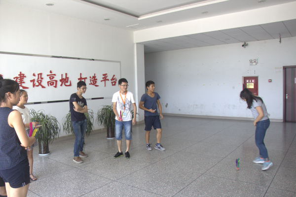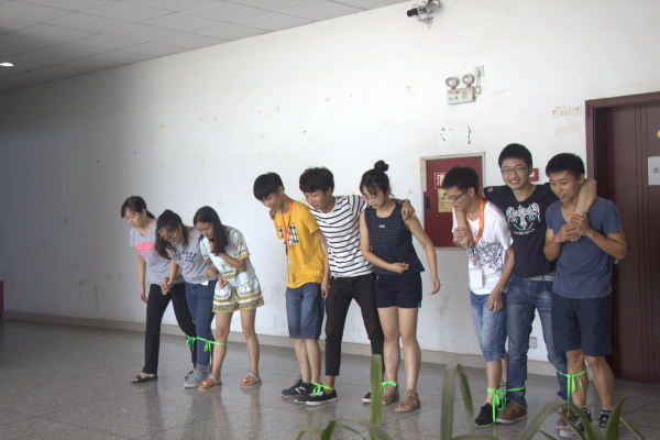 经过连续几天的勤奋学习、专业拓展,队员们多多少少在身心上都有些疲惫。为了让队员们得到一个彻底的放松,所以我们团队于2016年7月21日下午2点开展一次趣味运动会。在此次活动上,共有2个活动项目:小组踢毽子和三人绑腿跑。尽管烈日炎炎,但同学们依然兴致盎然,争分夺秒练习比赛项目,认真进行热身等赛前准备。在三人绑腿跑的环节上大家更是玩得不亦乐乎。比赛异常激烈,参赛队员一个个精神抖擞,队友们都随着比赛加油鼓励,场面十分热闹。整个运动会充满趣味性,又充满了挑战性,宣传组人员追踪记录着比赛进程,拍下了各个精彩的瞬间。