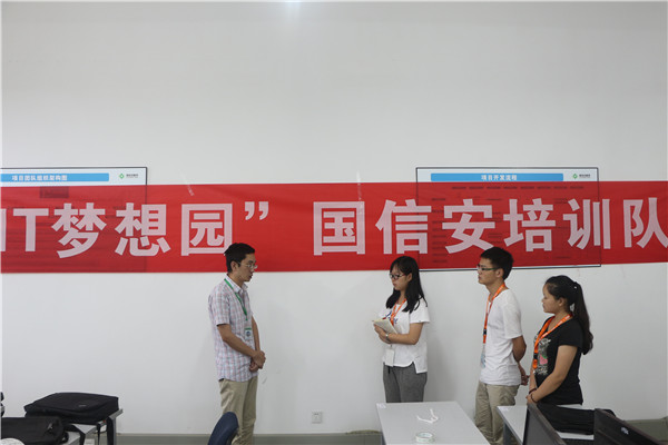国信安三下乡——IT梦想园的队员们就专业问题询问了项目经理。项目经理提到物联网(Internet Of Thing )属于新兴专业,主要强调物与物之间的连接,软件与硬件相结合,2010年开始,个别高校开始组建教学,由于刚开始开课会有些在教育方面的不成熟,但是随着时间的推移,通过不断的摸索,慢慢抓住了教学的主干。物联网专业国家都在对此加强重视,主要应用于医疗技术,高铁,农业,智能家居等,如果能够学好物联网,一个月9000+是没有问题的。对于物联网,经理建议我们学习软件方面,学习物联网要提前掌握JAvascript,JAVA,C/C++,传感技术等。