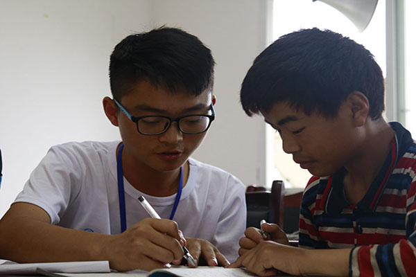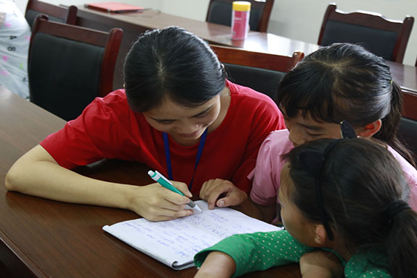 接下来,在简单的英语游戏中教会了大家几个常用的单词。在“水果蹲”中,大家记住了不少水果的英文名,在“兔子舞”中,大家知道了left是左,right是右。在住着的时候已经有不少小朋友拉着老师问东问西。有一个孩子曾问老师有没有出过国,因为她希望通过学好英语,出国看看外面的世界是不是电视里面的样子。志愿者老师告诉她,虽然老师没有出过国,但是老师相信,如果她足够的努力,好好学习,带着学习英语的热情去学习其他科目,一定会有机会看遍这个美丽的世界。