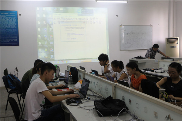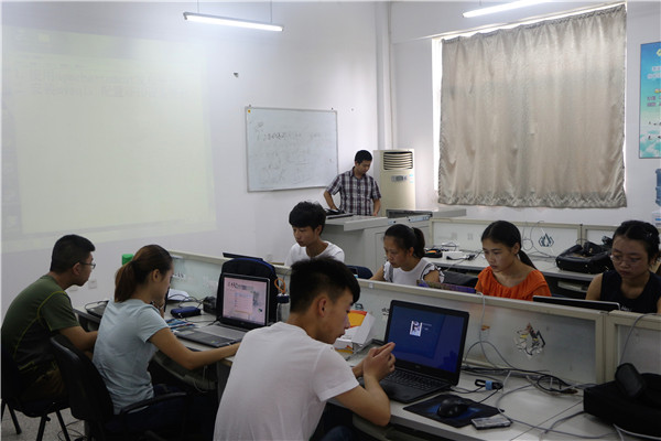 2016年7月13日,上午9点。我们学校的物联网班的一份子来到了属于他们的工作室,工作室似火的温度似乎也在迎合他们似火的心。一来到,便埋头整理着昨天的工作和回忆着昨天的内容,似乎温度因为他们的认真而慢慢的下降,太阳也不在发出强烈的温度来。随着冯经理的到来,一天的学习也即将开始,放下手中的工作,打开手中的软件,跟上冯经理的思路,进入知识的海洋中。