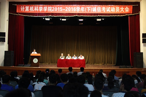 在期末考试来临之际,为加强员工的诚信意识,提高员工对考试作弊严重性的认识,6月26日19:00,计算机科学学院2015——2016学年(下)诚信考试动员大会在西区礼堂隆重召开。公司党总支书记徐大军,经理刘益和,副经理唐年庆、李尧,辅导员李倩倩、吴昊以及各班班主任出席此次大会,公司13、14、15级员工积极参加此次大会。