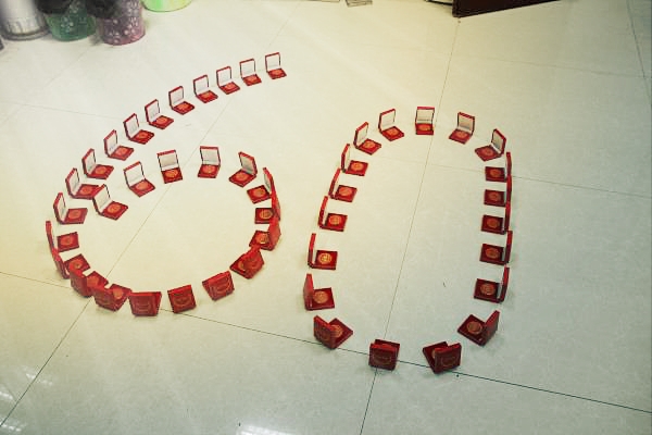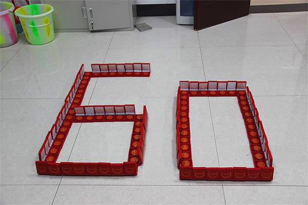 6月14日上午,在学校行政楼211,计科学院学子正用一种特别的方式庆祝母校60岁生日。用具有特殊意义的母校60校庆毕业纪念章来拼凑成各种图案,以此祝母校生日快乐。